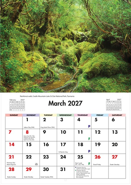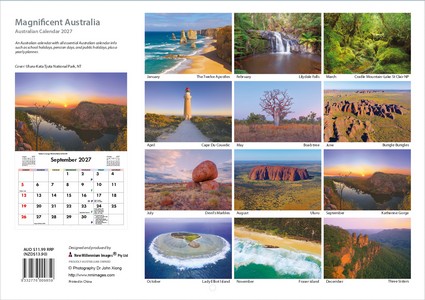 Standard size calendar showcasing a range of amazing Australian scenery from the Outback to the Great Barrier Reef.