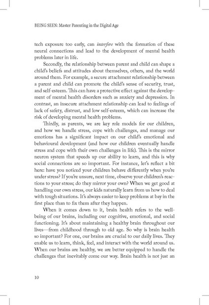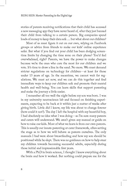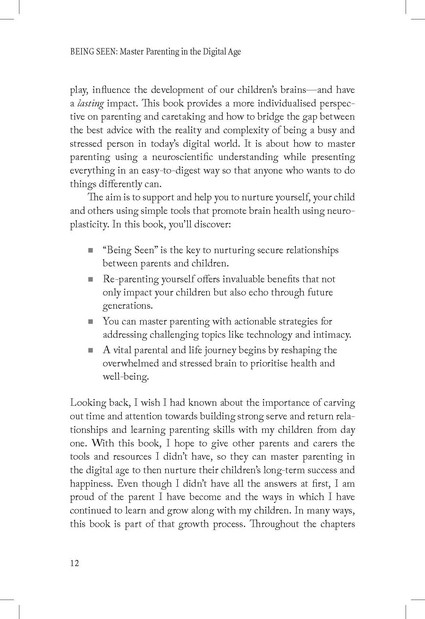 * Neuroscience-Based Parenting: "Being Seen" offers a unique approach by integrating neuroscience into parenting practices. Renowned neuroscientist Selena Bartlett provides readers with a science-backed understanding of how the digital age impacts children's brain development and mental well-being. This unique perspective allows parents to make informed decisions and implement strategies that go beyond simply limiting screen time.
