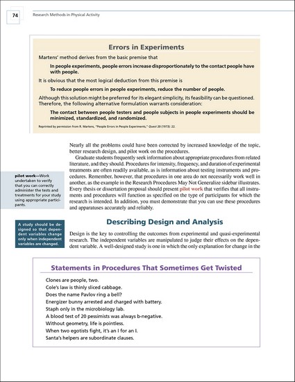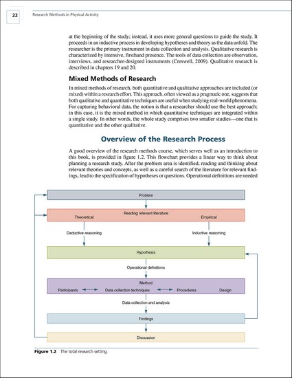 Part I. Overview of the Research Process Chapter 1. Introduction to Research in Physical Activity The Nature of Research Unscientific Versus Scientific Methods of Problem-Solving Alternative Models of Research Types of Research Overview of the Research Process Parts of a Thesis: A Reflection on the Steps in the Research Process Summary Chapter 2. Developing the Problem and Using the Literature Identifying the Research Problem Purpose of the Literature Review Basic Literature Search Strategies Steps in the Literature Search Summary Chapter 3. Presenting the Problem Choosing the Title Developing the Introduction: Background and Justification Stating the Research Purpose Presenting the Research Hypothesis Operationally Defining Terms Basic Assumptions, Delimitations, and Limitations Justifying the Significance of the Study Differences Between the Thesis and the Research Article Summary Chapter 4. Formulating the Method How to Present Methodological Details Why Planning the Methods Is Important Two Principles for Planning Experiments Describing Participants Selecting and Describing Instruments Describing Procedures Describing Design and Analysis Establishing Cause and Effect Interaction of Participants, Measurements, and Treatments Summary Chapter 5. Ethical Issues in Research and Scholarship Seven Areas of Research Misconduct Ethical Issues Regarding Copyright Model for Considering Scientific Misconduct Working With Faculty Protecting Human Participants Protecting Animal Subjects Summary Part II. Statistical and Measurement Concepts in Research Chapter 6. Becoming Acquainted With Statistical Concepts Why We Need Statistics Use of Computers in Statistical Analysis Description and Inference Are Not Statistical Techniques Ways to Select a Sample Ways to Assign Participants to Groups Post Hoc Justifications Difficulty of Random Sampling and Assignment: How Good Must It Be? Measures of Central Tendency and Variability Basic Concepts of Statistical Techniques Data for Use in the Remaining Statistical Chapters Summary Chapter 7. Statistical Issues in Research Planning and Evaluation Probability Hypothesis Testing Meaningfulness (Effect Size) Power Using Information in the Context of the Study Summary Chapter 8. Relationships of Variables What Correlational Research Investigates Understanding the Nature of Correlation What the Coefficient of Correlation Means Using Correlation for Prediction Partial Correlation Semipartial Correlation Procedures for Multiple Regression Logistic Regression Discriminant Function Analysis Moderators and Mediators Multivariate Forms of Correlation Summary Chapter 9. Differences Between Groups How Statistics Test Differences Types of t Tests Interpreting t Relationship of t and r Analysis of Variance Analysis of Covariance Experiment-Wise Error Rate Understanding Multivariate Techniques Summary Chapter 10. Nonparametric Techniques Chi Square: Testing the Observed Versus the Expected Procedures for Rank-Order Data Correlation Differences Between Groups Summary Chapter 11. Measuring Research Variables Validity Reliability Methods of Establishing Reliability Intertester Reliability (Objectivity) Standard Error of Measurement Using Standard Scores to Compare Performance Measuring Movement Measuring Written Responses Measuring Affective Behavior Scales for Measurement Measuring Knowledge Item Response Theory Summary Part III. Types of Research Chapter 12. Sociohistorical Process in Sport Studies Development of the Discipline Theory and Sport History Relationship Between Theory and Method Research Sources Research Topics Research Design Data Analysis and Interpretation Research Findings Exemplary Studies in Sport History Summary Chapter 13. Philosophical Research in Physical Activity Identifying the Purposes of Philosophical Research Philosophical Inquiry Continuum Locating a Research Problem Analyzing a Research Problem Summary Appendix Chapter 14. Research Synthesis (Meta-Analysis and Systematic Reviews) Purpose of Research Synthesis Presenting Effect Size Data Summary Chapter 15. Surveys Questionnaires Additional Considerations for Online Surveys Delphi Method Personal Interviews Normative Surveys Summary Chapter 16. Other Descriptive Research Methods Developmental Research Case Studies Observational Research Unobtrusive Research Techniques Correlational Research Summary Chapter 17. Physical Activity Epidemiology Research U.S. National Physical Activity Guidelines and Plan Observational Versus Experimental Research What Is Physical Activity Epidemiology? Definitions of Physical Activity and Its Components Assessment of Physical Activity Epidemiological Study Designs Reading and Interpreting a Physical Activity Epidemiological Study Summary Chapter 18. Experimental and Quasi-Experimental Research Sources of Invalidity Threats to Internal Validity Threats to External Validity Controlling Threats to Internal Validity Controlling Threats to External Validity Types of Designs Summary Chapter 19. Qualitative Research Procedures in Qualitative Research Data Analysis Concluding Remarks Summary Chapter 20. Mixed-Methods Research Combining Quantitative and Qualitative Methods Designing Mixed-Methods Research Issues in Mixed-Methods Research Examples of Mixed-Methods Research Summary Part IV. Writing the Research Report Chapter 21. Completing the Research Process Research Proposal Thesis and Dissertation Proposals Advisor and Dissertation Committee The Good Scholar Must Research and Write Scientific Writing First Things Are Sometimes Best Done Last Developing a Good Introduction Describing the Methods The Proposal Process Preparing and Presenting Qualitative Research Proposals Writing Proposals for Granting Agencies Submitting Internal Proposals Completing Your Thesis or Dissertation Results and Discussion Handling Multiple Experiments in a Single Report Using Tables and Figures Summary Chapter 22. Ways of Reporting Research Basic Writing Guidelines A Brief Word About Acknowledgments