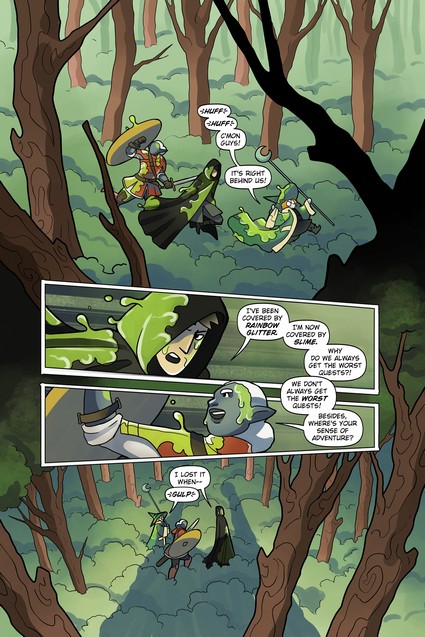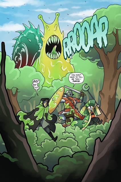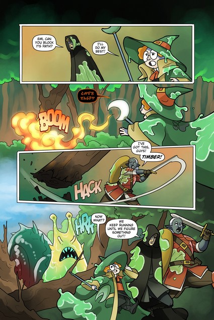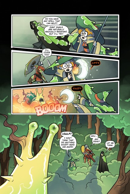 The heroic trio known as the Wolf Cubs are back! Gwynn (dark elf warrior), Kriv (thief) and Emi (mage) are battling a giant snail intent on making them its lunch!