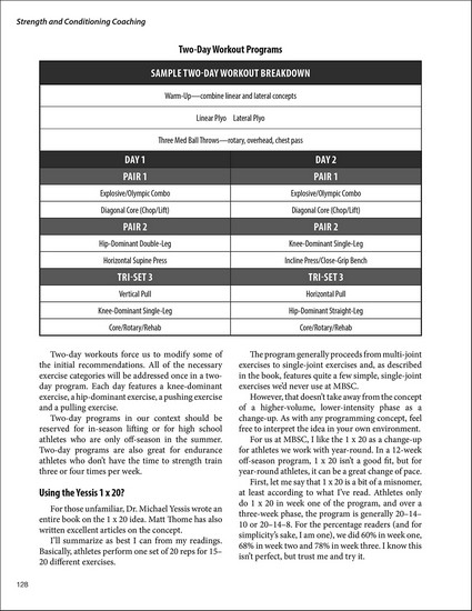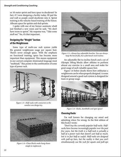 Chapter 1. Designing and Equipping Your Facility Chapter 2. Building a Strong Program Foundation Chapter 3. Designing the Perfect Program Chapter 4. Core Training, Mobility, Activation and Warm-Ups Chapter 5. Explosive Training Chapter 6. Strength Training Chapter 7. Lower-Body Training Chapter 8. Upper-Body Pulling and Pressing Chapter 9. Choosing a System of Training Chapter 10. Creating Efficient and Effective Workouts Chapter 11. Speed Development Chapter 12. Conditioning Chapter 13. Computerizing Your Program Chapter 14. Designing Programs for Teams or Groups Chapter 15. Parting Words: The Mirror and the Window