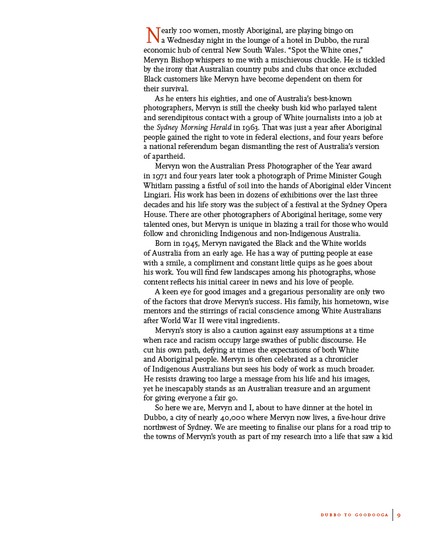 This illustrated biography of one of Australias treasured artists offers an intimate portrait of the struggles and triumphs of Mervyn Bishop, Australias ground-breaking Indigenous photographer.