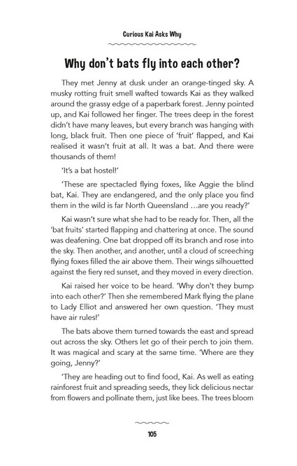 Award-winning children's book author, Dr Sarah Pye, presents her latest wildlife adventure in a new middle-grade chapter book, Curious Kai Asks Why. Have you ever wondered if songbirds have accents? Or if fish can fly? Or whether bats are rats with wings or birds with fur? 10-year-old Kai, whose mind is constantly brimming with curiosity, has questions like these all the time. She and her artistic mum hitch up their camper trailer and go in search of scientists, and species, who have the answers. Kai is convinced the answers to her burning questions about Queensland's diverse wildlife will help her save the world. Curious Kai Asks Why is suitable for children aged 8-12 with enquiring minds, and it makes a fabulous teaching tool.