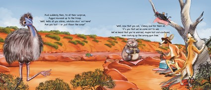 Aggie the emu is feeling down. Tall and strange looking, she doesn’t look much like the other birds in the Outback. She’s convinced herself life would be better if she had four legs