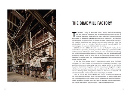 1. The Country Power Station 2. The Paper Mill 3. The Denim Factory 4. The Brick Works 5. Former Sunbury Asylum 6. Pleasant Creek Hospital 7. Former Larundel Asylum 9. Mooroopna Hospital 10. Kyneton Hospital 11. Country Homesteads 12. Gasworks 13. Geelong Power Plant 14. Wildlife Wonderland 15. The Met 16. The Drive-In 17. The Workshop 18. Calder Park Raceway 19, The Tin Lids Factory 20. Swimming Pools 21. Country Chapels